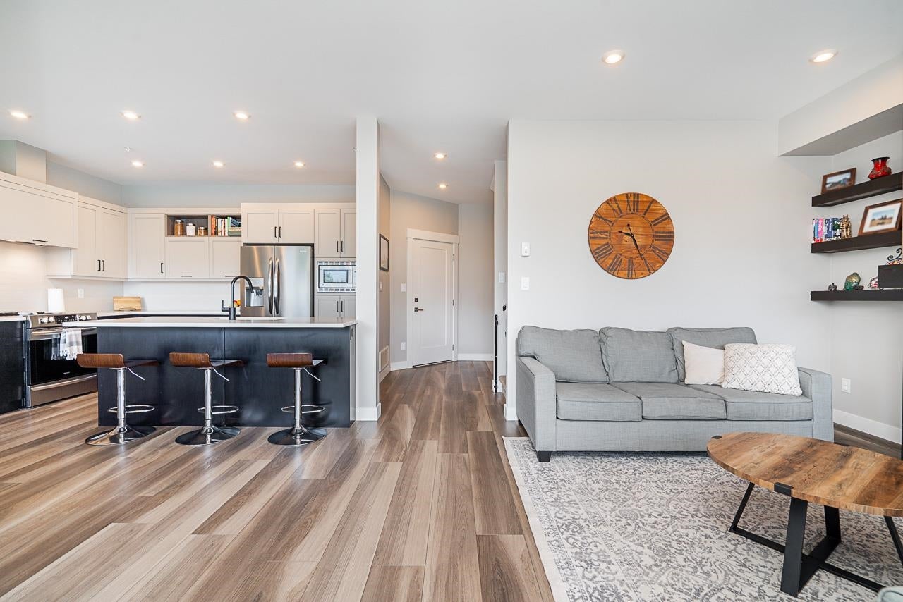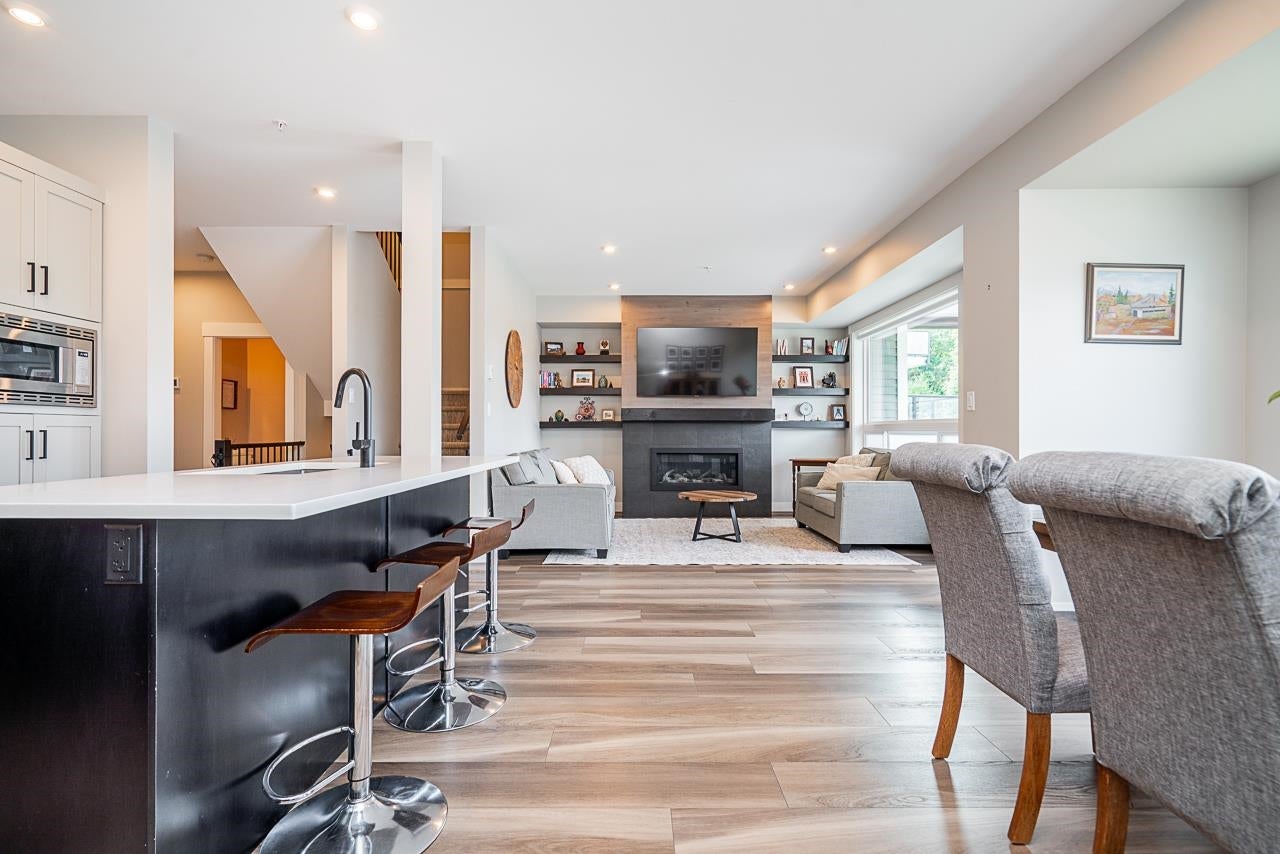 Welcome to Water’s Edge! This beautiful 4-bedroom, 4-bathroom, three level townhouse with beautiful views of the Fraser River is not to be missed! Open-concept kitchen & living room area with stainless steel appliances, quartz countertops is perfect for hosting, with access to the deck with custom sun shades. This townhouse features 3 bedrooms up, with a beautiful primary suite boasting a large walk-in closet, ensuite with soaker tub and shower, and has its own private deck to enjoy the amazing views. Downstairs enjoy a large Rec Room, and additional 4th bedroom, along with a large storage room, and a fully fenced patio area on the basement floor, perfect for kids or pets. This home comes complete with a double side-by-side garage, A/C. Call to book your private showing today!