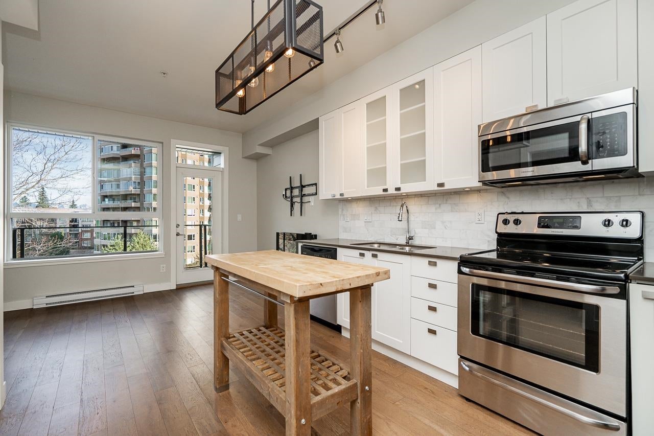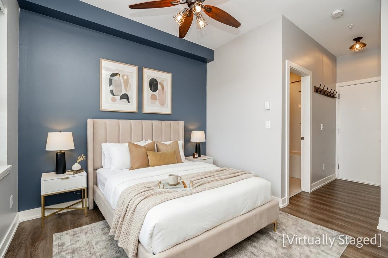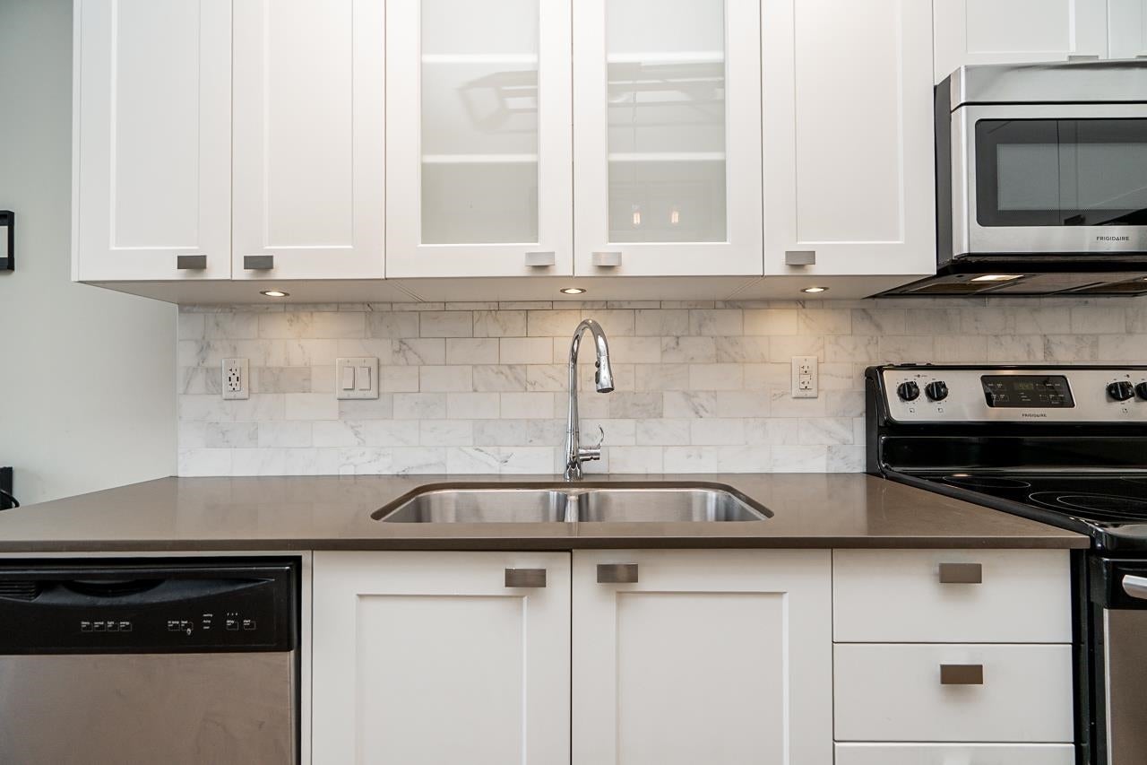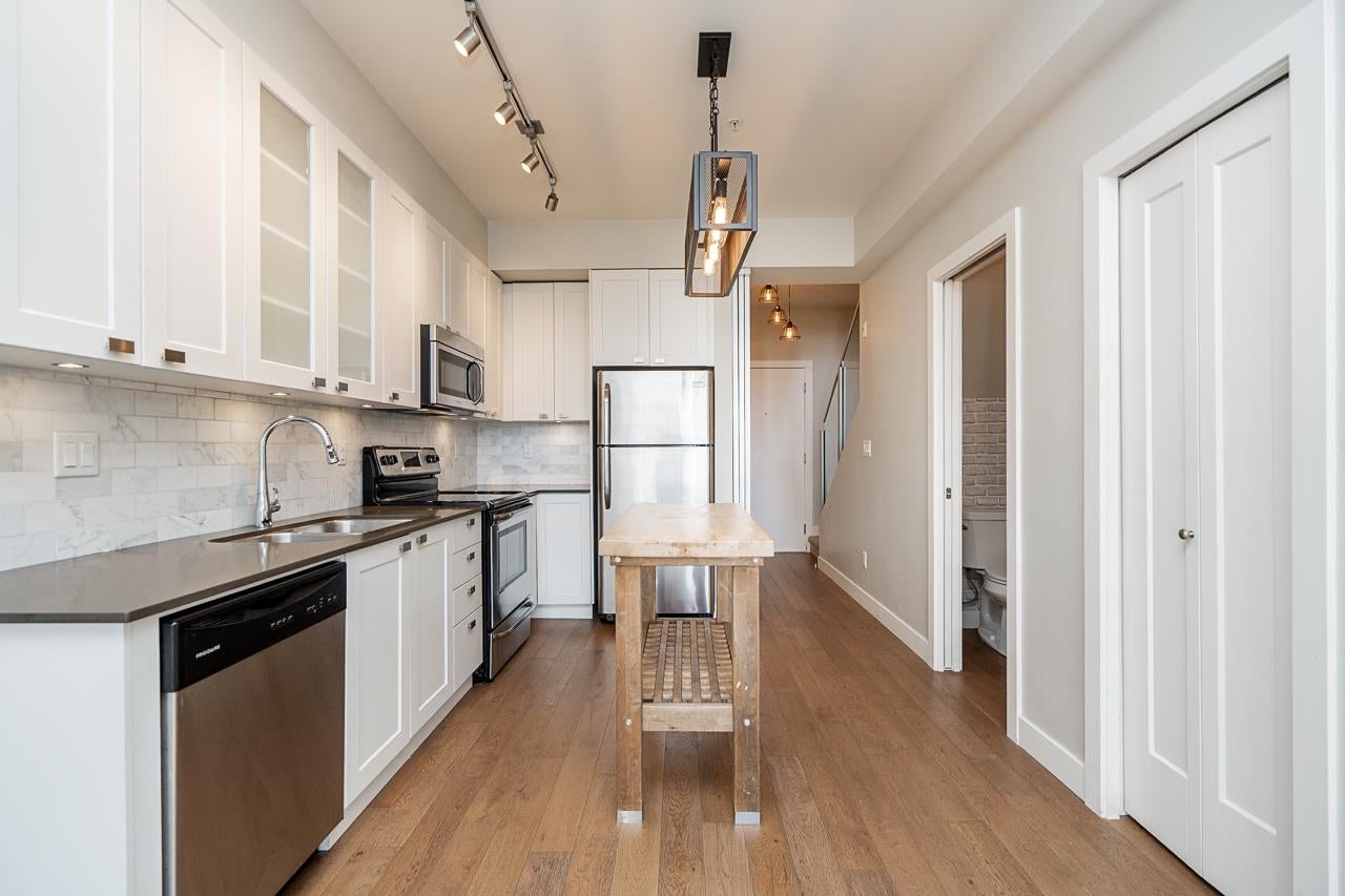 EVERYDAY CONVENIENCE AT YOUR FINGER TIPS! This stunning 2-storey, 1 Bedroom and Den Penthouse style condo, is centrally located, in a PET FRIENDLY building with easy access to all amenities. The main floor offers an open kitchen and living area leading out to a private patio, and a Den for a work-from-home office space. The upper level features a private bedroom, full bathroom, and a large roof top patio, and stunning views of the mountains. Stepping outside you will enjoy Abbotsford favourite’s, After Thoughts, Sushi Nara, and Trading Post Brewing. Includes 1 Parking, 1 Storage Locker, and 2 Pets allowed. Welcome to Hudson’s Loft! This one is not to be missed! Book your private showing today!